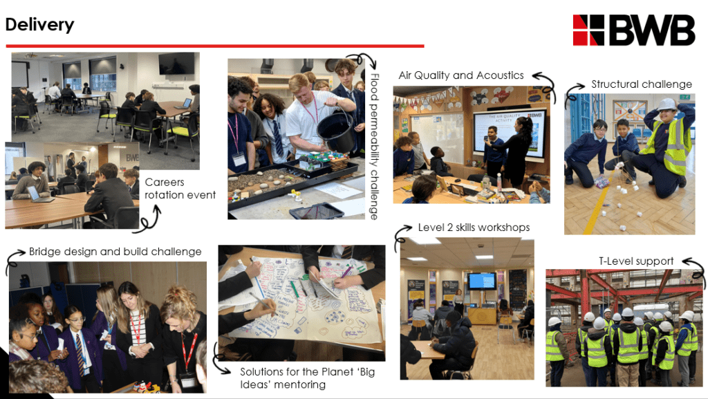BWB is an engineering and environmental consultancy with five UK offices. Educational engagement has been a core part of their social value strategy: careers talks, mock interviews, practical STEM sessions, mentoring, T-Level support, species identification (yes, including matching animals to their droppings – apparently a big hit), and a multi-year engagement journey structured around the Gatsby Benchmarks.